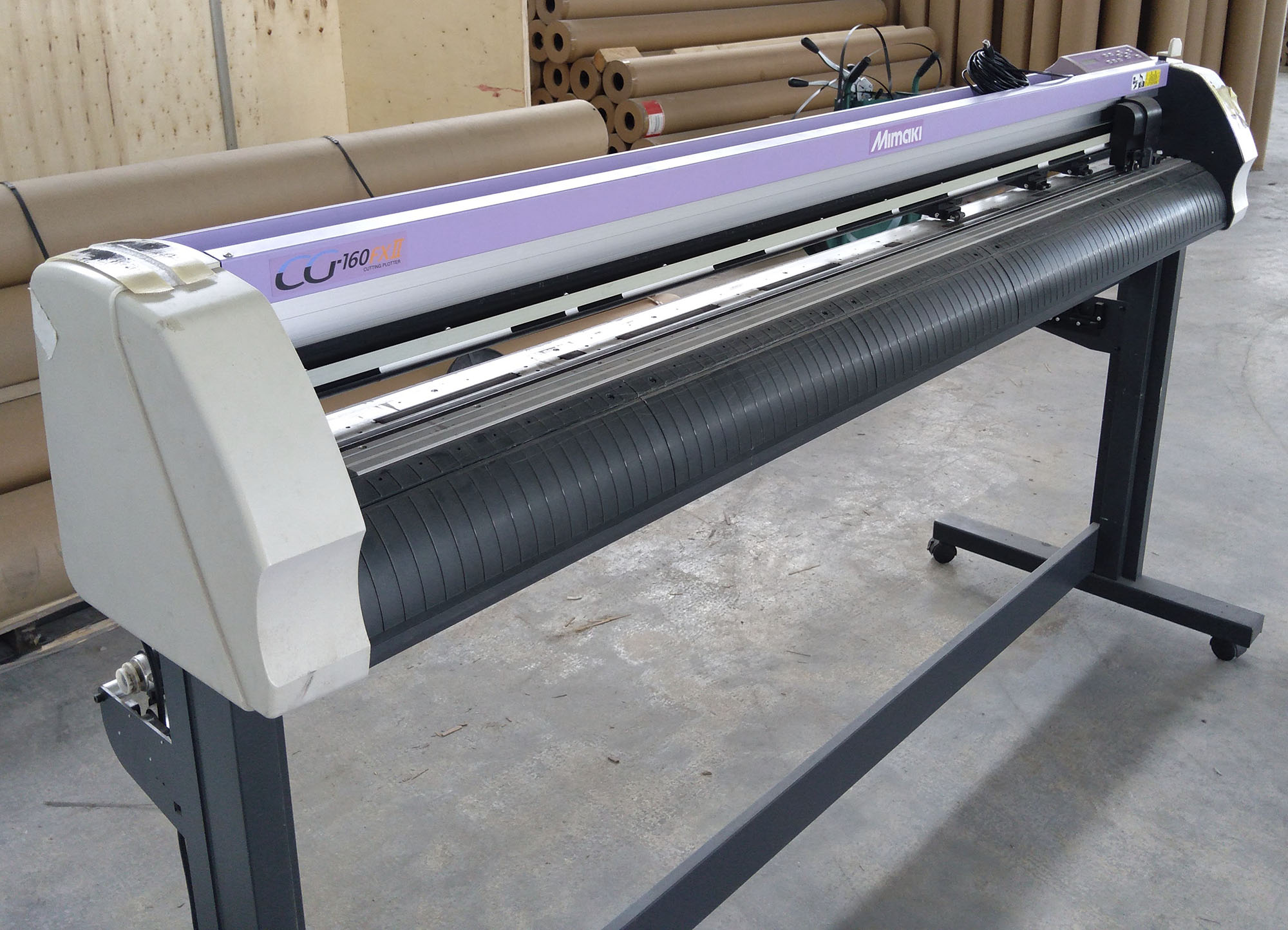 Descrizione: Plotter da taglio 160cm non funzionante, venduto per pezzi di ricambio. Un modello molto diffuso, i pezzi possono essere utilizzati anche per plotter di diverse dimensioni purché siano Mimaki della stessa famiglia. Completo di stand, pali per lo svolgimento dei materiali, testa di taglio, display e tutte le parti meccaniche ed elettroniche. Posizione: presso il Cliente. CODICE: P_CLI009038-471.